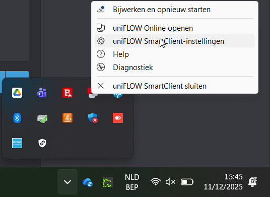 Zoek de uniFLOW SmartClient in je task-tray (rechts onderaan)